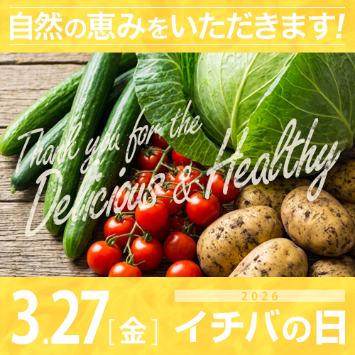 2026年3月の「淀橋市場の日」特選品が決まりました。今月は27日金曜日の開催です。お近くの「イチバの日」の幟(のぼり)のあるお店で是非美味しい旬の野菜・果物をお買い求めください。